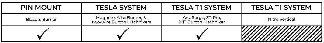 Compatible with Blaze, Blaze TR, Burner, Tesla, Tesla T1, ST, and Burton Hitchhiker bindings.